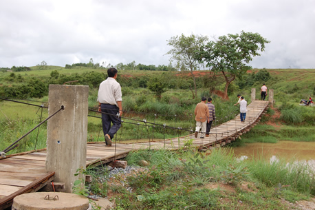雨期には年間降水量のほとんどが集中し、シエンクワン県ユワン村は陸の孤島となってしまいます。子供たちは学校に行けなくなり、無理に川を渡り命を落とす子。緊急手術が必要な大けがを負ったにもかかわらず寸断されてしまった道路上で亡くなった男性。出産間近の女性が病院に行けず道路上で出産。橋さえあればとの声を聞き橋建設事業を実施。 川の氾濫する雨期でも、子供たちは橋を渡り学校へ通い、緊急事態でも病院の在る街へと行くことができ、生活に必要な物資の運搬も人が通る道としての役割だけでなく命を支える橋として喜ばれ利用されています。