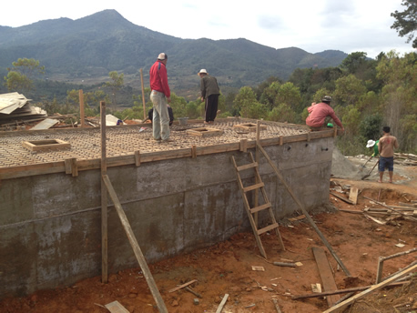 ラオスのシエンクアン県クーン市ギャーン地域。3千人以上の人々が暮らす集落の水不足は深刻で地域の存続も危機的な状況でした。数キロ先の山の中腹には、キレイな水が湧き出る水源があるが、集落の在る場所まで引き込むための水利事業には、莫大な予算がかかるため、費用を捻出することができず、毎日のように山道を歩いて水汲みを行なっていました。切実な支援要請を受け、事業に取り組むこととなりました。重機などが入れない山岳地帯での作業はかなり難航しましたが、水源地から村までの約6kmの配管工事、貯水タンクの作業など、住民が積極的に参加し、完成することができました。 完成式典には200名以上の人が集まり、ラオス政府からの感謝状を贈呈して頂きました。
